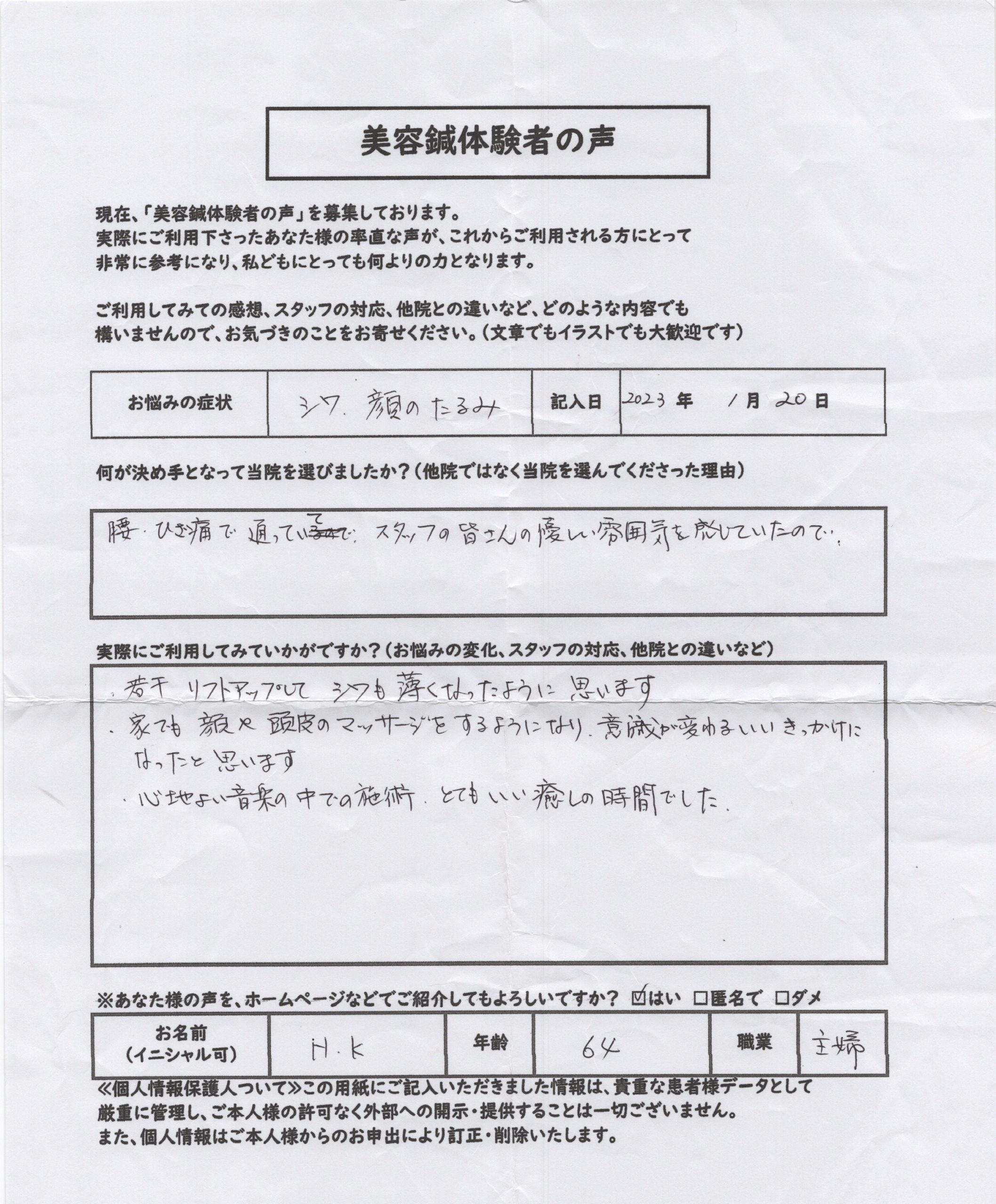 美容鍼は、顔の深部までアプローチできるため、血行を改善することでターンオーバーの機能回復、コラーゲンの生成を増加させます。加齢による影響をすべて取り除くことは不可能ですが、美容鍼で血行改善することで最も変わるのは、表情の明るさではないでしょうか。